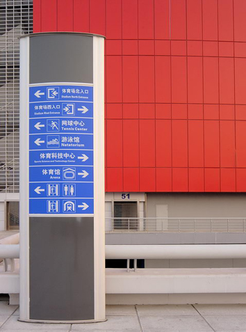 由于該工程的體育特性,增加了標識系統設計的難度,我們由內而外、從大到小地深入研究三級導視的分布,將人流導入與分流做到了高效、安全、流暢;對看臺區域和觀眾席牌數及座位指示牌的設計,我們進行了嚴格的優選,讓觀眾能根據指示牌,迅速找到自己的座位。同時,在標識系統的設計中,我們還對標識的形式、尺度、色彩、材質、照明和安裝等功能屬性進行了探討,使該工程獲得最佳實際效果。經十運會期間十萬人流量的實踐證明,我們所設計的該套標識系統完全科學、合理。