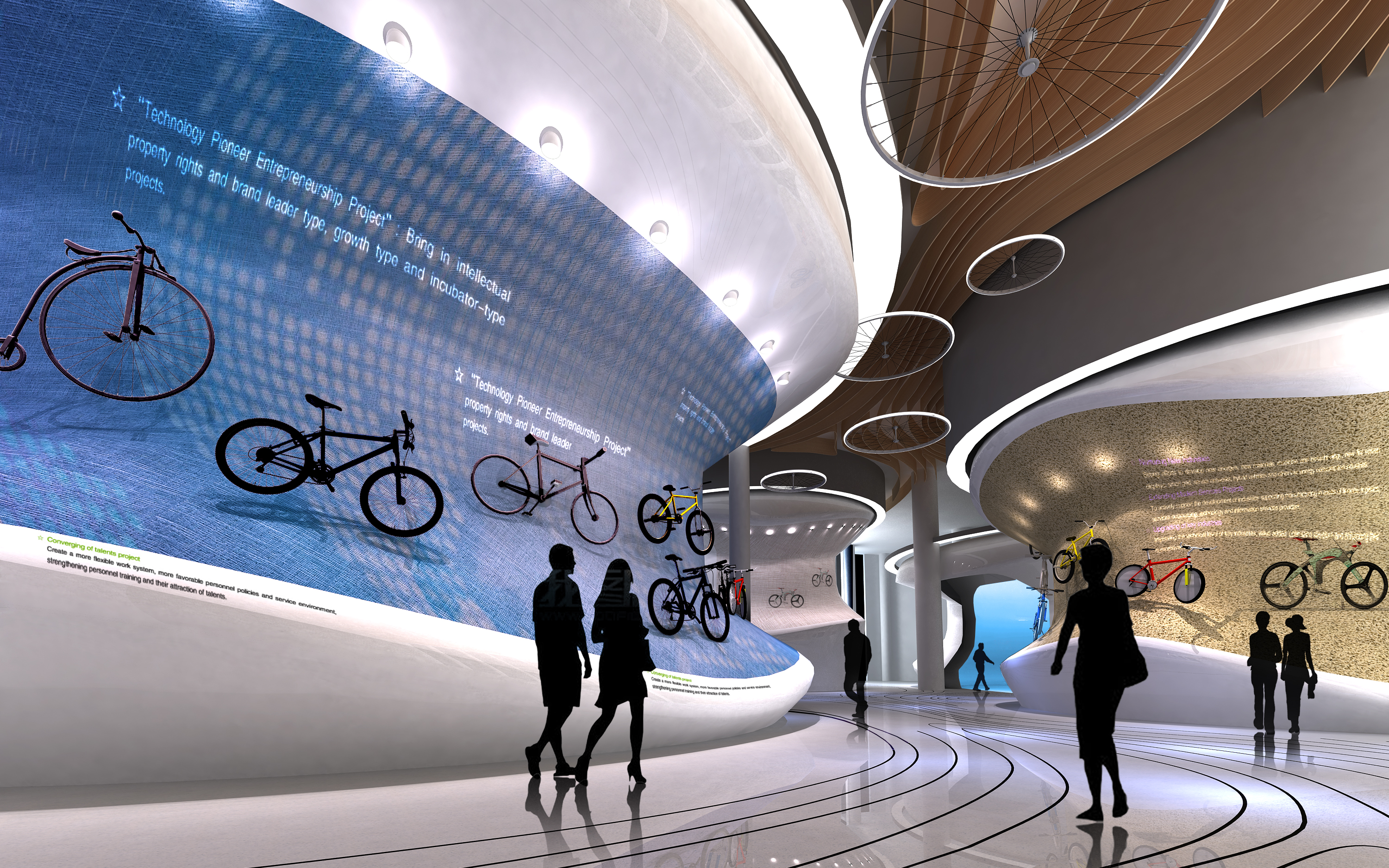國際自行車城的設計突出兩大核心空間點:一個是充滿活力的自行車生活聚集中心,另一個是高效優美的開放空間。我們著力打造國內領先的專業化 “自行車主題體育文化城”模式,將自行車文化概念融入整個綜合體,集銷售、展示、文化創意、餐飲娛樂、休閑互動體驗多功能于一體??梢哉f,我們打造的不僅僅是單純的自行車城,還是一種順應自然綠色環保的慢生活的態度,一種引領潮流的騎行體育文化。
