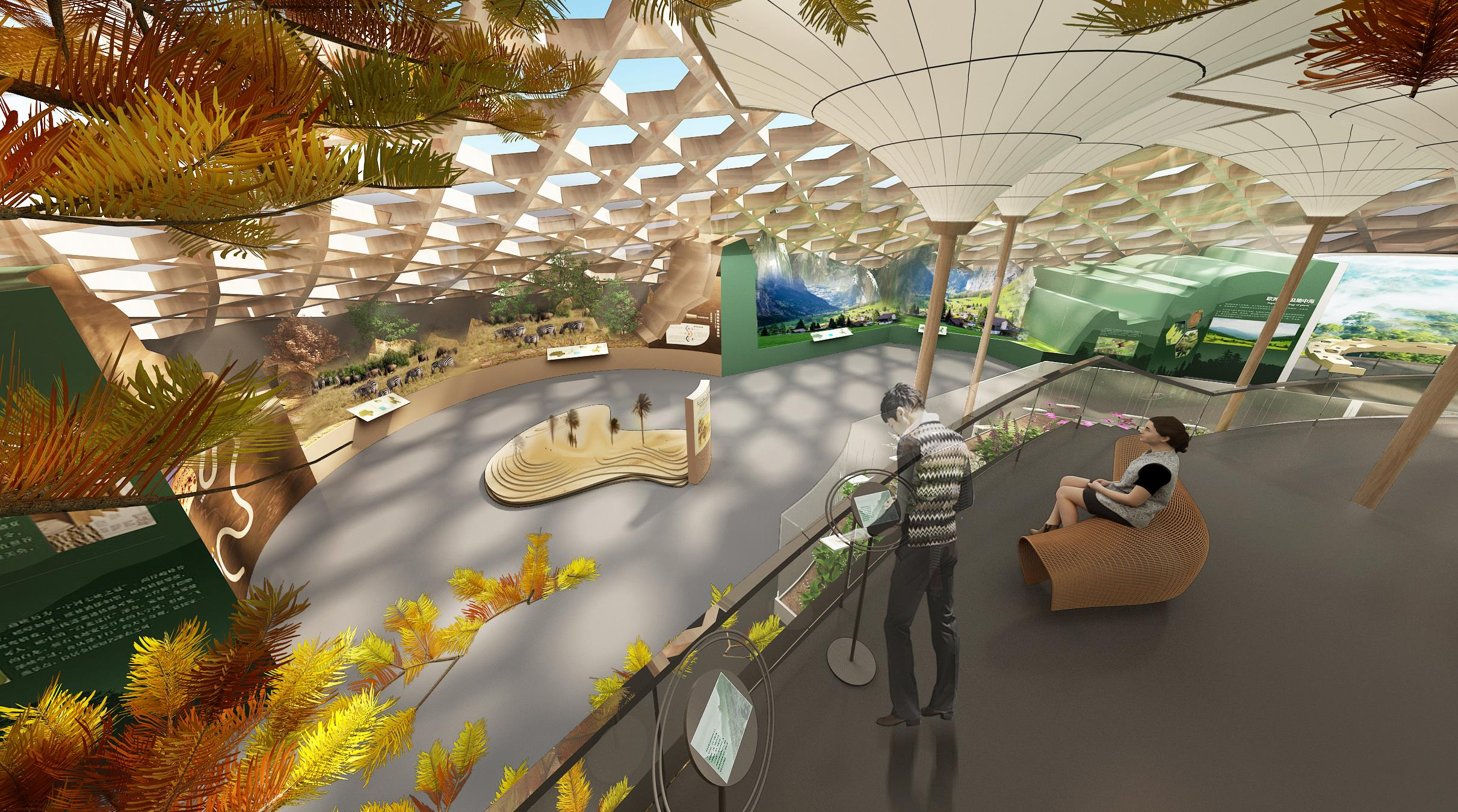 國家植物博物館分為博物館主館、藥博館、溫室等展館區域。金螳螂文化擔綱設計國家植物博物館展陳,以“原本山川,極命草木;關心植物,關注未來”為基本主題,分為3個部分和10個單元展開規劃設計。