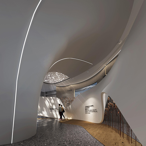 莫言文學館位于山東省高密市,建筑面積23000平方。莫言文學館將圍繞莫言構建的“高密東北鄉”的文學地理概念,用“出走、找尋、回歸、超越”四個階段遞進式構筑“莫言的文學王國”,同時引入時間與光影的語言,構建人與自然、空間與自然的相互聯系,喚醒心靈最深處的記憶,體驗其背后的精神實質,讓觀眾得以從一個全新的視角和維度認識到莫言文學的價值,沉醉于莫言文學的藝術魅力。除展覽空間之外,莫言文學館還配備有閱覽室、報告廳、文學研究室、文創空間與辦公室,兼具展示性與功能性。