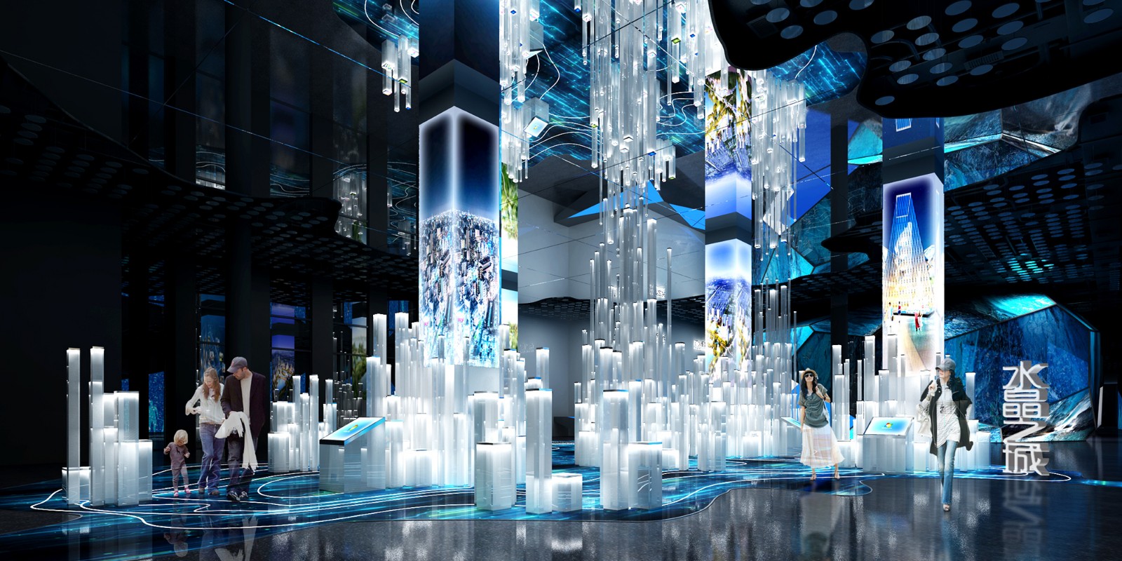 蘇州金螳螂文化發展股份有限公司設計團隊的設計成果,將業主要求的“水之靈、晶之韻、光之幻、影之舞”的效果精彩地呈現了出來,讓水晶靈韻、傳統文化和浦江山水三個元素得到了完美的融合和體現,獲得了業主的認可和表揚。將以專業的創意團隊、強大的落地布展實力