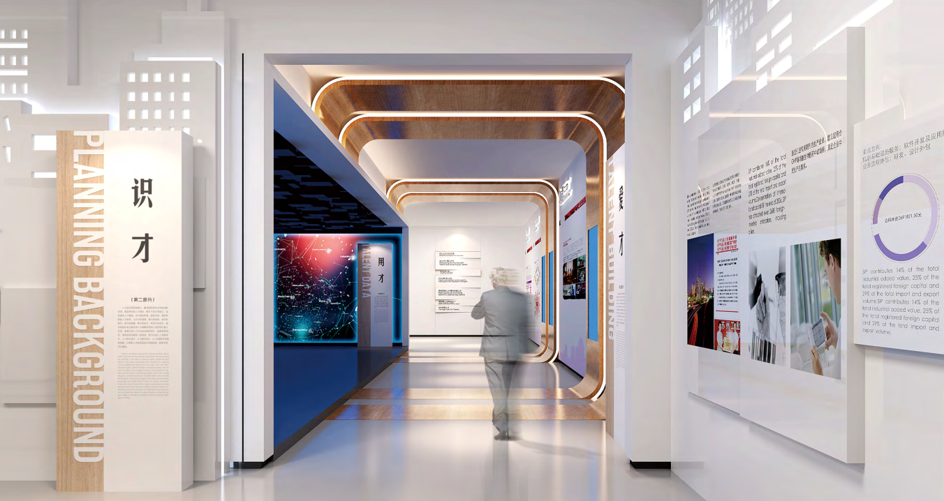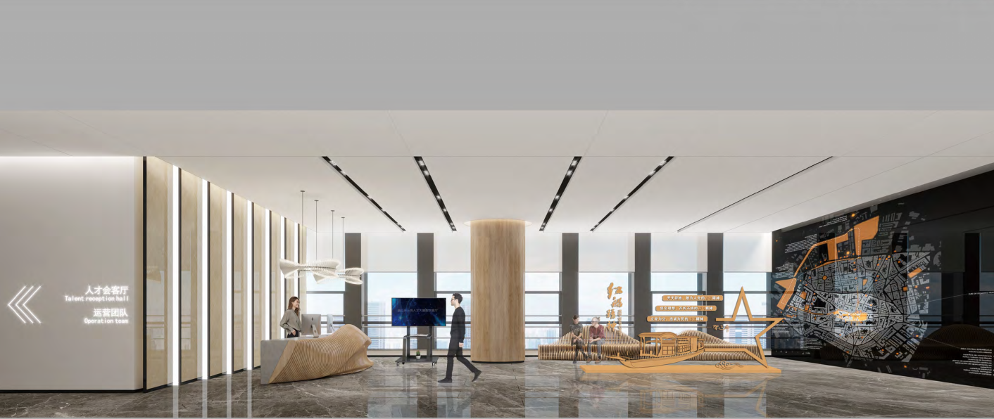 2019年3月5日召開的十三屆全國人大二次會議上,國務院總理李克強作政府工作報告指出,將長三角區域一體化發展上升為國家戰略,編制實施發展規劃綱要。浙江省省委人才工作領導小組辦公室與嘉興市委聯合出臺《嘉興市服務長三角人才一體化發展的意見(試行)》,聚焦“五個一體化”,推出以“人才”為核心的浙江長三角人才大廈項目。 由金螳螂文化擔任設計與施工的浙江長三角人才大廈項目,位于嘉興市南湖區國際金融廣場金融大廈B座的21、22和23層,每層約1700平方米。其中21層是長三角人才項目集聚區;22層是長三角企業集聚區、高校聯合會、協會集聚區;23層是長三角人才數字展示中心、長三角人才會客廳、人才驛站、公共服務信息平臺、嘉興長三角人才發展研究院、運營公司,展廳主要分為兩個區域,功能區和展示區。 展示+交流 綜合服務空間 科技感、現代感、生態感具足的人才大廈空間中,高科技互動、大數據智能、專業化服務相互交融。 功能區主要負責支撐“人才高質量發展的最后一公里服務”,展示區圍繞新時代長三角人才一體化發展主題,多維度展示長三角人才、產業、政策、城市等配套,打造服務長三角人才一體化展廳。 智慧人才展廳 展廳引用習近平總書記十九大報告中“以識才的慧眼、愛才的誠意、用才的膽識、容才的雅量、聚才的良方,把黨內和黨外、國內和國外各方面優秀人才集聚到黨和人民的偉大奮斗中來。”一句話貫穿整個廳;以人才為核心,吸引人才、服務人才、留住人才等角度打造智慧人才展廳。 展廳將展示內容與公共空間有機融合,將展線融入到整個辦公空間之內,以移動滑屏、透明屏、混合現實互動、隔空互動等多種展示方式,全方位詮釋長三角一體化發展戰略的政策與具體實施方略。 金螳螂文化匠心質造,將傾力把“浙江長三角人才大廈”打造成為長三角區域集人才集聚、項目孵化、集成服務、成果展示、信息集散、活動承辦、城市合作于一體的人才創新創業綜合性平臺。