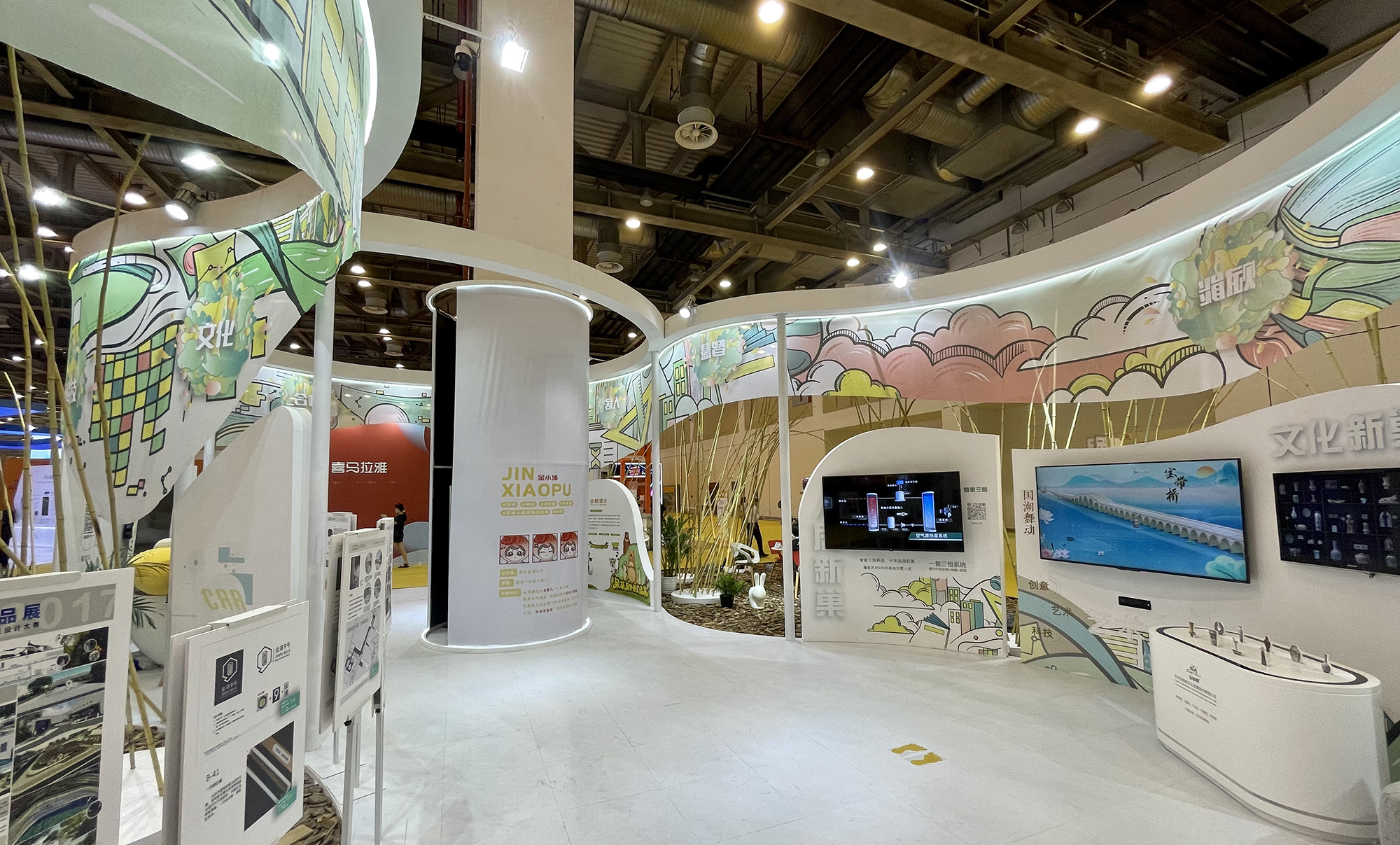 本屆創博會,金浦九號作為唯一一家參展的文化產業園,在進館的C位展出。金螳螂文化進行了整個展位“金浦·新巢時代”的設計,并作為產業園入駐企業參展。