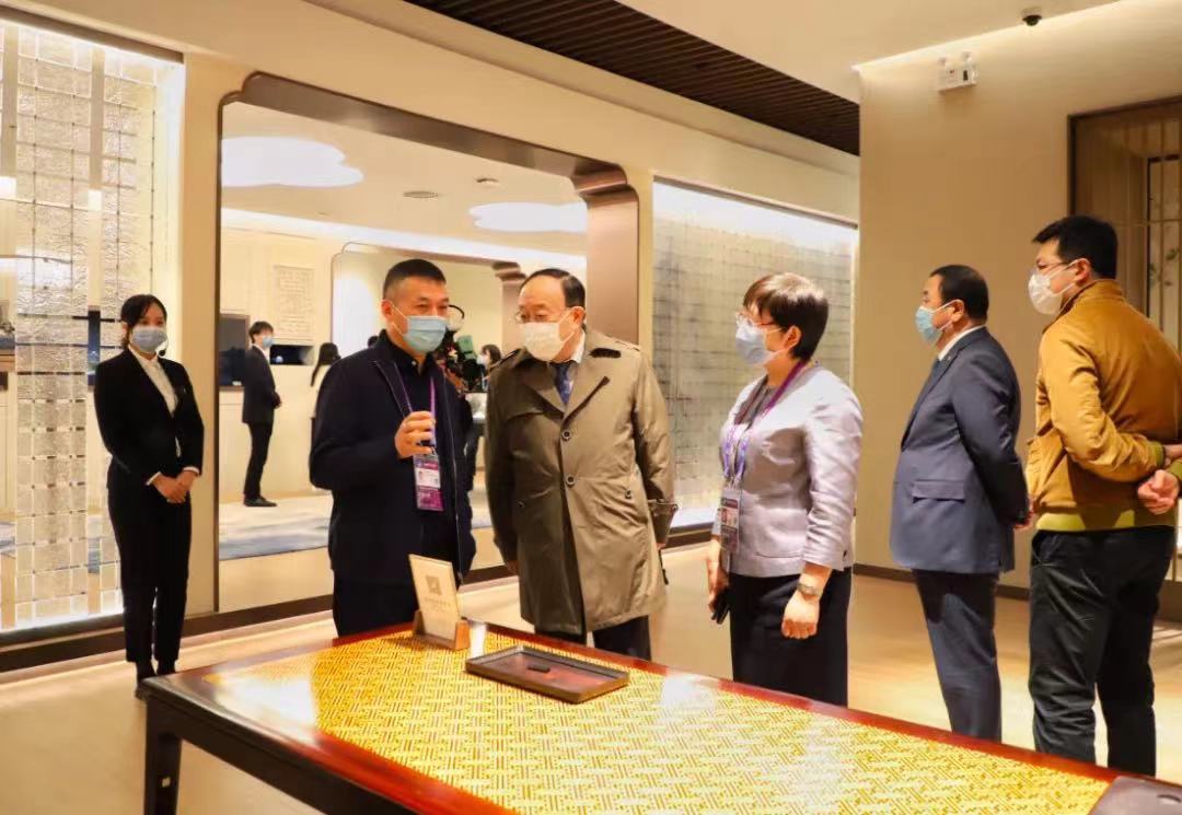 央視新聞等主流媒體全程報(bào)道, 全球首發(fā)、亞洲首秀、中國首展, 第四屆進(jìn)博會(huì)一展盡覽! 在進(jìn)博會(huì),不僅僅有 衣食住行的新奇體驗(yàn), 還蘊(yùn)含可感可觸的江南之美。 當(dāng)“蘇作館”遇上“進(jìn)博會(huì)”, 會(huì)碰撞出怎樣的妙趣呢? 讓我們來一探究竟。 (視頻) 中國國際進(jìn)口博覽會(huì)由中華人民共和國商務(wù)部和上海市人民政府主辦,中國國際進(jìn)口博覽局、國家會(huì)展中心(上海)承辦,是迄今世界上第一個(gè)以進(jìn)口為主題的國家級展會(huì)。 11月4日,第四屆中國國際進(jìn)口博覽會(huì)在上海開幕,國家主席習(xí)近平通過視頻發(fā)表主旨演講。本屆進(jìn)博會(huì)總展覽面積達(dá)36.6萬平方米,來自127個(gè)國家和地區(qū)的近3000家參展商亮相企業(yè)展。 今年5月,由金螳螂文化設(shè)計(jì)營造的蘇作館在國家會(huì)展中心(上海)正式開館。 在第四屆進(jìn)博會(huì)這一世界級展廳,蘇作館更是將蘇州這座千年古城的獨(dú)特魅力以及藝巧工精、氣韻雅絕的蘇工蘇作之美展現(xiàn)給全世界。 蘇繡、緙絲、玉雕、核雕、蘇扇、明清家具、蟋蟀盆、鳥籠、仿古銅器……十多個(gè)蘇作門類在這里大集結(jié),200多位工藝美術(shù)大師和非遺傳承人的近千件蘇工蘇作藝術(shù)精品在這里亮相,為進(jìn)博會(huì)奉上了一道文化盛宴。 11月8日上午,商務(wù)部黨組成員、副部長,進(jìn)口博覽會(huì)組委會(huì)辦公室主任王炳南視察上海國展中心蘇作館,為蘇作館創(chuàng)新展示“江南文化”之美,并向世界展現(xiàn)“中國文化”之自信表示高度贊賞。 商務(wù)部黨組成員、副部長王炳南視察蘇作館 金螳螂文化運(yùn)用古典園林營造手法進(jìn)行藝術(shù)化空間處理,提煉富于特色的江南自然及人文元素,通過現(xiàn)代美學(xué)的整體設(shè)計(jì),充分展現(xiàn)“雅、精、細(xì)、巧”的蘇作共性。 自5月26日開館至今,蘇作館共接待入店客群近200批次,入店游客約2萬人次。 蘇作館將蘇工蘇作精品創(chuàng)新引入進(jìn)博會(huì)的場館上海國家會(huì)展中心,不僅僅在進(jìn)博會(huì)期間展示蘇工蘇作之美,進(jìn)博會(huì)閉幕后,也將持續(xù)展現(xiàn)蘇式生活、弘揚(yáng)江南文化。