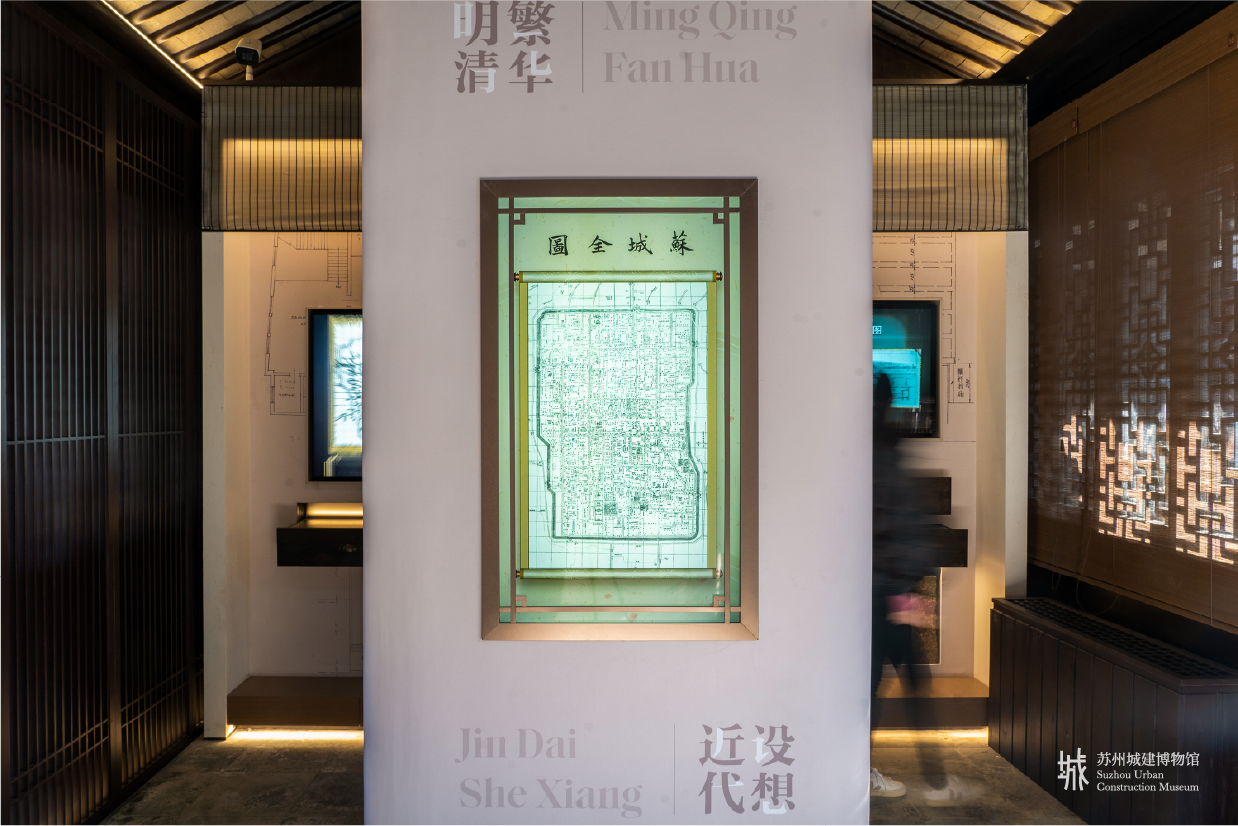 (視頻) 從春秋時(shí)期象天法地的水陸雙棋盤選址到如今多元發(fā)展的現(xiàn)代城市格局。蘇州,這座千年古城,在城市建設(shè)領(lǐng)域,一直凝結(jié)著人類文明的智慧,在歷史長(zhǎng)河中不斷煥發(fā)著活力與生機(jī)。 “食四時(shí)之鮮、居園林之秀、聽(tīng)昆曲之雅、用蘇工之美”。如果說(shuō),蘇州本身就是一本意蘊(yùn)無(wú)窮的文明巨著。那么城建,就是讀懂這本巨著最好的注解。 蘇州城建博物館坐落于平江歷史文化街區(qū),占地面積 1600 平方米,是以全國(guó)重點(diǎn)文物保護(hù)單位——衛(wèi)道觀前潘宅為基底改建的專業(yè)博物館。 金螳螂文化項(xiàng)目團(tuán)隊(duì)以蘇州之窗為核心元素構(gòu)建了穿越古今的時(shí)光通道,貫穿起蘇州城建博物館城紀(jì)千載、現(xiàn)代蘇城、城市生長(zhǎng)、城市客廳、百館之城等主要展廳。 建館、造景、養(yǎng)心,于平江古巷里,把握城市生長(zhǎng)脈絡(luò)。金螳螂文化深入研究蘇州城市建設(shè)歷程,將傳統(tǒng)展陳形式與高新多媒體展陳手法相結(jié)合,營(yíng)造出多角度、全方位的沉浸式參展體驗(yàn),用創(chuàng)新與匠心續(xù)寫歷久彌新的古典靈動(dòng)之美。 在城紀(jì)千載廳,不論最早記載著蘇州城建起源的文字資料《越絕書》,還是19張反映蘇州城市格局阜盛繁榮的古地圖……無(wú)數(shù)安靜陳列的浩瀚史料靜靜訴說(shuō)著蘇州壯闊輝煌的千年城建史。 以南宋名畫《平江圖》為雛形的影片《宋元格局》,運(yùn)用三維建模技術(shù),勾勒出宋元時(shí)期平江府坊市一體,河街相鄰的特色城市格局。 如何保留古城的傳統(tǒng)格局、改建恢復(fù)曾經(jīng)的河道水系、建筑不超過(guò)北寺塔的視界距離、并不斷為蘇州的城市發(fā)展注入新鮮血液……現(xiàn)代蘇城廳,以詳實(shí)的照片與文獻(xiàn)材料展示現(xiàn)當(dāng)代蘇州城市保護(hù)與建設(shè)的真實(shí)故事,講述著蘇州古城保護(hù)的使命,續(xù)寫著蘇州城建的傳奇。 城市生長(zhǎng)廳以“城市生長(zhǎng)”的互動(dòng)展項(xiàng)串聯(lián)起蘇州不同時(shí)期的最高建筑,又以榮譽(yù)陳列的形式講述著新時(shí)代蘇州城市建設(shè)的壯麗篇章。 城市會(huì)客廳整體保留了潘宅正廳——禮耕堂的建筑格局,駐足此處,幾百年的滄桑變換仿佛觸手可及。 百館之城廳中,一張可進(jìn)行交互體驗(yàn)的手繪版“蘇州城建圖”,以現(xiàn)代化展陳手段結(jié)合國(guó)風(fēng)插畫,集中展示了蘇州的百園百館與名人故居,觀一城而知百館。 “人民城市人民建,人民城市為人民”,城建博物館是蘇州城建文化價(jià)值的縮影,承載著蘇州過(guò)去的厚重歷史,匯聚著對(duì)蘇州未來(lái)發(fā)展的美好愿景,將成為蘇州城建精神風(fēng)貌的展示窗口與文化地標(biāo)。 5.18(國(guó)際博物館日),蘇州城建博物館將正式開(kāi)館,誠(chéng)邀您從這里開(kāi)始,認(rèn)識(shí)蘇州,讀懂蘇州城。
