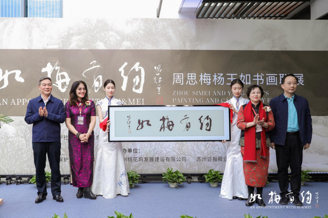 桃花塢里桃花庵 桃花庵里桃花仙 蘇州桃花塢,唐寅故居里 一場墨香飄揚的書畫盛宴如約而至 (視頻號) “如梅有約,聯(lián)璧雙輝”。10月30日,“如梅有約——周思梅、楊玉如書畫聯(lián)展”在桃花塢唐寅故居的文化展示館優(yōu)雅啟幕。 來自蘇州本土和寶島臺灣的兩位書畫藝術家,用氤氳水墨勾勒心中的底蘊江南,用一紙書畫表達對生活的熱愛。 本次書畫聯(lián)展由蘇州市哲學社會科學界聯(lián)合會、中共姑蘇區(qū)委宣傳部(社科聯(lián))主辦,蘇州名城保護集團有限公司承辦,蘇州桃花塢發(fā)展建設有限公司、蘇州日報報業(yè)集團文旅體育融媒中心協(xié)辦,金螳螂文化設計施工出品。 2015年,在一場“海峽兩岸寫經展”上周思梅與楊玉如一見如故,并相約聯(lián)合舉辦展覽,各取兩人名字中一字,定名“如梅有約”。2021年,鐘愛江南文化的楊玉如定居蘇州,此后二人一同追摹古人、探討筆墨、追尋江南文脈。 兩位藝術家以其特有的敏銳和對書畫的獨到見解,創(chuàng)作出一件件佳作,共同在蘇州續(xù)寫了此次江南情緣。 步入展廳,一幅9米長卷映入眼簾,氣勢恢宏,這是周思梅臨摹黃公望的《富春山居圖》。 徐徐向內走去,小品、冊頁、扇面、條幅、長卷等150余件作品令人目不暇接,作品涵蓋了山水、人物、竹、梅等題材,全面展示了江南文化特色。 前幾年,周思梅以“吳門傳馨”為主題,在故宮博物院、榮寶齋、上海豫園等地多次舉辦個人書畫展,旨在弘揚中國傳統(tǒng),傳播江南文化,介紹姑蘇人文。 蘇州桃花塢因吳門畫派代表人物唐寅而聞名,此次兩位藝術家?guī)е餐ǖ慕衔幕斫庠俅巫哌M桃花塢,將傳統(tǒng)文化的韻味傳承延續(xù)。