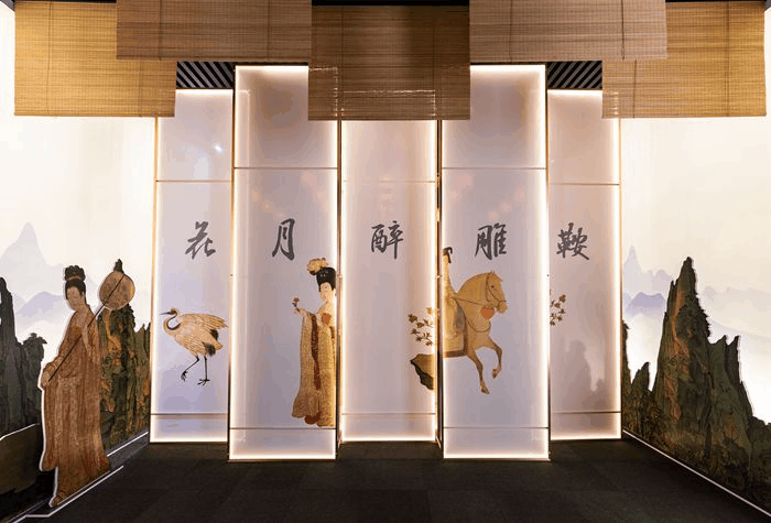 長安之韻 盛唐之始 雍容自信 超越時空 在西安博物院 “花月醉雕鞍——大唐金鄉縣主展” 體驗生逢盛世的多彩人生 領略和鳴于飛的盛唐溫度 (視頻) 西安博物院原創展覽 “花月醉雕鞍——大唐金鄉縣主展” 由西安市文物局主辦 西安博物院 與西安市文物保護考古研究院 聯合承辦 金螳螂文化設計出品 展覽由“大唐縣主”“生逢盛世” “多彩人生”“和鳴于飛”四個單元組成 以金鄉縣主的一生為敘事主線 通過墓葬出土的金銀器、三彩器 以及彩繪陶俑等文物 多角度展現這位唐代貴族女性的絢彩人生 全面呈現出生活在長安的上層女性 所表現的不同于其他時代的 自由、開放與熱情 金鄉縣主是唐代開國皇帝李淵的孫女,滕王李元嬰的第三女,皇宗帝戚,身份顯赫。該展覽是金鄉縣主墓自1991年發現30余年以來,首次對該考古發現最全面、最系統、最深入的專題展現。 展覽共展出金鄉縣主墓出土的“金筐寶鈿”頭飾、騎馬俑、百戲俑等文物181件(組),展覽時間為2022年9月30日至2023年3月31日。 展覽主題擬為“花月醉雕鞍”,意在透過唐代貴族女性的生活,引領觀眾回眸千年前的大唐,駐足長安水邊多麗人的宜人風景,欣賞催馬戰猶酣的瀟灑英姿,真切地觸摸歷史,感知盛唐的溫度。 在展陳設計中,金螳螂文化團隊運用了出土器物上的紋飾和唐墓壁畫中的藝術形象作為設計元素,充分闡釋了唐文化的特質,通過四個單元不同主題的色彩來烘托墓主人豐富多彩的人生。 優雅、詩性、細膩、豪邁……展陳空間顯露著多樣溫度。 純粹、簡約的現代設計語言,將唐長安城的歷史和人文風貌娓娓道來。 “唐風”裝飾的形式設計語言,在鮮明厚重的色彩氛圍中烘托出唐代藝術的輝煌成就。 在展廳中軸線布局的單元空間中,利用不同展柜的組合與分布,意象化再現了墓葬出土遺物的禮儀空間形式,使考古發現的過程得以循序再現。 展廳各單元中穿插設置了唐代的生活化元素,”燈盞“”屏風“”帷幔”“唐式家具“等實物元素,引導觀眾現場感受”唐風唐韻“的時代風貌。 婦女馬上笑 顏如赪玉盤 翻飛射鳥獸 花月醉雕鞍 走過千年歲月印記 穿梭歷史之年輪 “花月醉雕鞍——大唐金鄉縣主展” 邀您重溫盛唐之風留下的傳奇