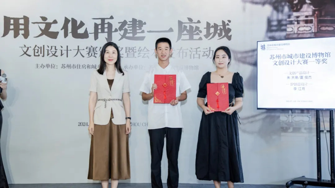 為進一步挖掘蘇州城市建設精髓,更好傳播城建文化,7月25日,由蘇州市住房和城鄉建設局主辦、蘇州城建博物館承辦的“用文化再建一座城”文創設計大賽頒獎暨繪本發布活動在蘇州城建博物館禮耕堂舉行。 △ 蘇州市住建局黨組成員、副局長錢毓靜致辭 ? 文創設計大賽自4月29日啟動以來,總計收到來自全國各地的原創設計稿件200多件,共評選出優秀獎20件、三等獎6件、二等獎4件、一等獎2件(IP創意設計類、文創產品設計類各1件)。 △ 金螳螂文化資深平面設計師李江月(右) 獲得“IP創意設計”一等獎 IP創意設計 活動現場還對文創設計大賽的優秀作品進行了展出,吸引眾多觀眾流連忘返。 這些作品有的將蘇州的傳統建筑元素融入日常用品當中,有的以蘇州的民俗風情為主題創作了精美的飾品,無不展現了蘇州城建文化的多元與包容。 蘇州城建博物館作為傳承和展示城市建設文化的重要陣地,始終致力于挖掘和推廣城市文化瑰寶。此次大賽不僅收獲了眾多優秀作品,更重要的是激發了大眾對蘇州城建文化的關注與熱愛。 推開一扇窗,認識一座城。 蘇州城建博物館坐落于江蘇省蘇州市平江歷史文化街區,占地面積約為 1600 平方米,以全國重點文物保護單位——衛道觀前潘宅為基礎改建而成。 金螳螂文化項目團隊以蘇州之窗為核心元素構建了穿越古今的時光通道,貫穿起蘇州城建博物館城紀千載、現代蘇城、城市生長、城市客廳、百館之城等主要展廳。 建館、造景、養心,于平江古巷里,把握城市生長脈絡。 金螳螂文化深入研究蘇州城市建設歷程,將傳統展陳形式與高新多媒體展陳手法相結合,營造出多角度、全方位的沉浸式觀展體驗,用創新與匠心續寫歷久彌新的城市更新之美。